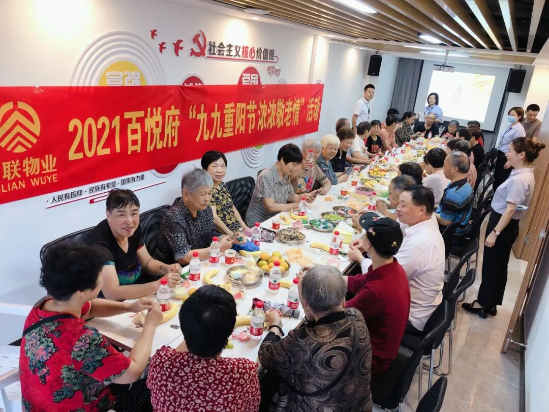 重阳节当天,信联物业服务中心精心准备“茶话会”,大家一边品尝美食一边深叙邻里情,现场的各位长者们脸上洋溢着幸福的笑容。